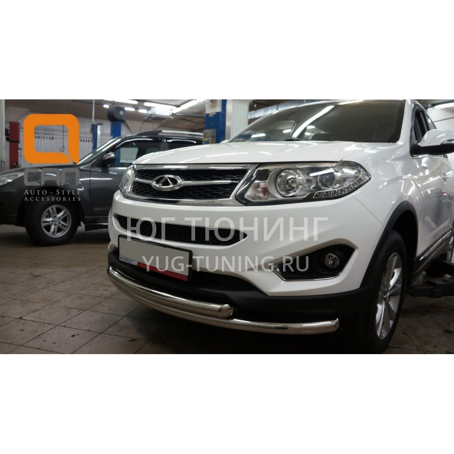 Защита переднего бампера Chery Tiggo 5 (2014-) (двойная) d60/60(кенгурин|кенгурятник|навесное оборудование|защита бампера|обвес - )