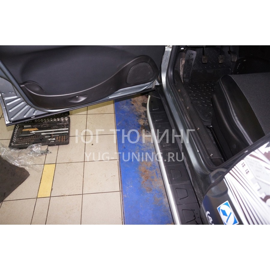Выдерживает вес до 100 кг. При монтаже сверления кузова не требует. Цена указана за комплект из двух порогов и крепежа.