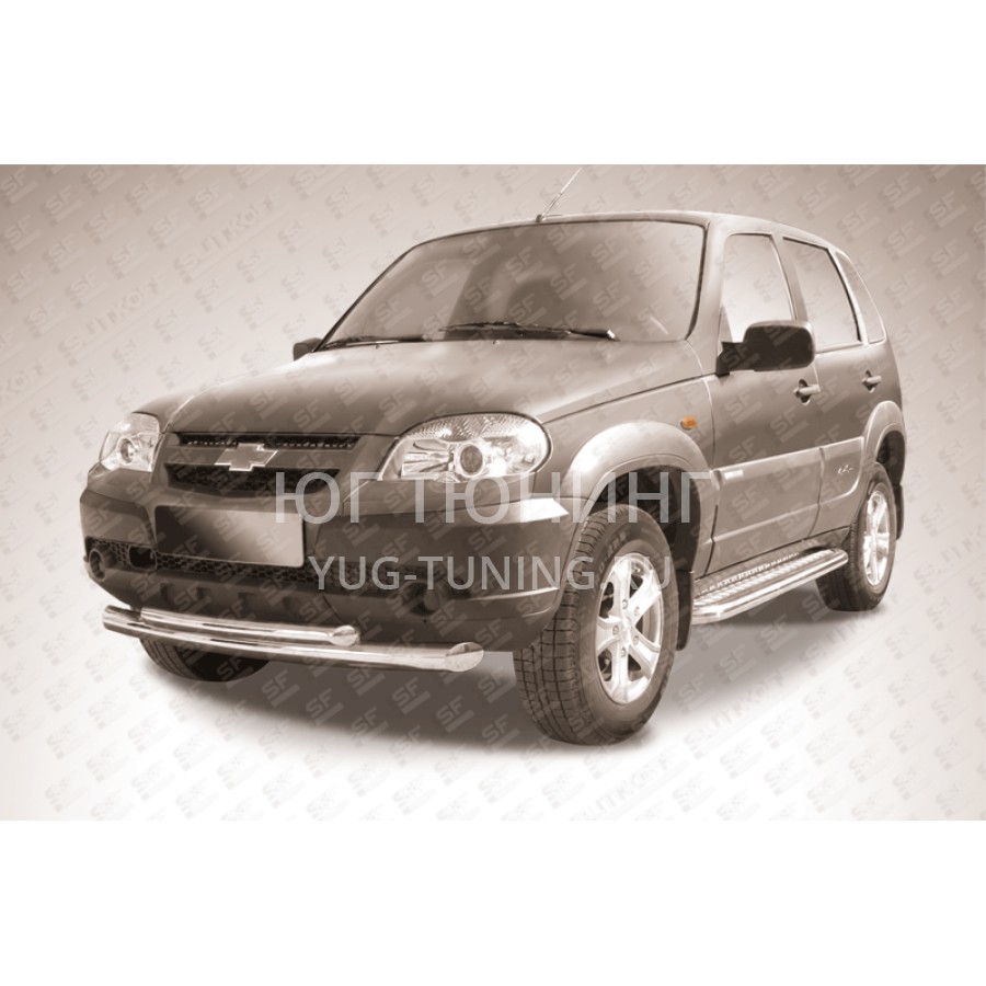 При изготовлении товара: Защита переднего бампера d76+d57 двойная Chevrolet Niva (2010) используются передовые технологии и качественные материалы. Данный товар CHN10-002 комплектуется комплектом переходных кронштейнов и необходимым количеством болтов, гаек и шайб для его установки. Также в комплекте поставляется понятная инструкция по установке и рекомендации по уходу за изделием.