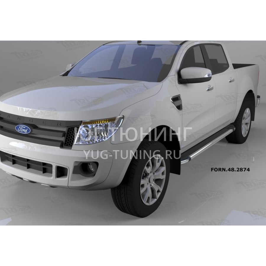 Пороги алюминиевые (Brillant) Ford Ranger (2012-) (черн./нерж.) на Ford Ranger T6 (2012-2016)