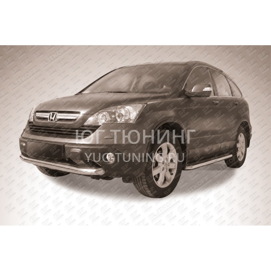 При изготовлении товара: Защита переднего бампера d76 Honda CR-V (2009) используются передовые технологии и качественные материалы. Данный товар HCRV002 комплектуется комплектом переходных кронштейнов и необходимым количеством болтов, гаек и шайб для его установки. Также в комплекте поставляется понятная инструкция по установке и рекомендации по уходу за изделием.