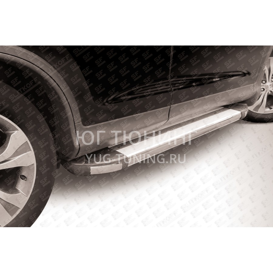 При изготовлении товара: Пороги алюминиевые Honda CR-V (2013) (2L) используются передовые технологии и качественные материалы. Данный товар HCRV13-008 комплектуется комплектом переходных кронштейнов и необходимым количеством болтов, гаек и шайб для его установки. Также в комплекте поставляется понятная инструкция по установке и рекомендации по уходу за изделием.