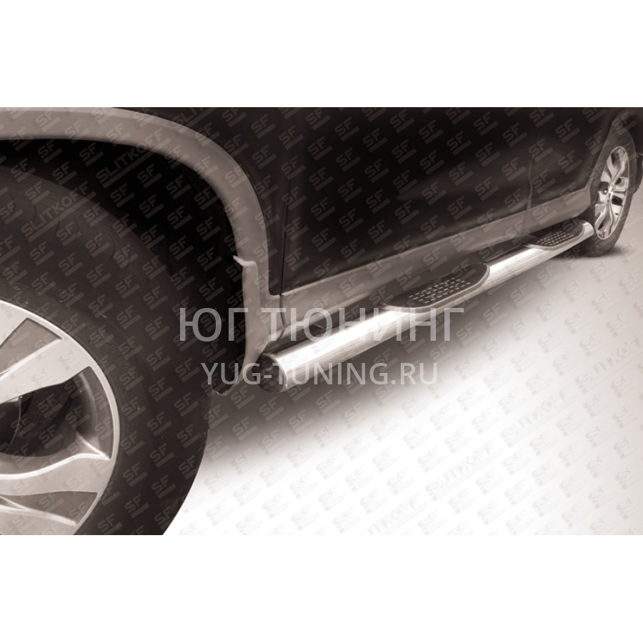 При изготовлении товара: Пороги d76 с проступями Honda CR-V (2013) (2L) используются передовые технологии и качественные материалы. Данный товар HCRV13-005 комплектуется комплектом переходных кронштейнов и необходимым количеством болтов, гаек и шайб для его установки. Также в комплекте поставляется понятная инструкция по установке и рекомендации по уходу за изделием.