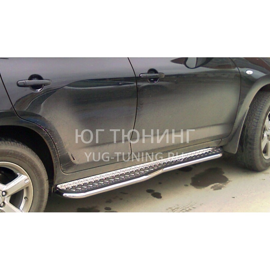 Пороги выполнены из нержавеющей трубы AISI 304 d-43x1,5 mm с алюминиевым листом. Устанавливаются изделия в штатные места автомобиля, все необходимые для установки данной детали крепежные элементы и инструкция входит в комплект. Благодаря порогам посадка-высадка в автомобиль будет гораздо комфортней. Рифлёная алюминиевая площадка весьма удобна и практична за счет легкости листа, отсутствия скольжения при передвижении (даже в зимний период). Все производимые компанией «Технотек» изделия имеют сертификаты соответствия.