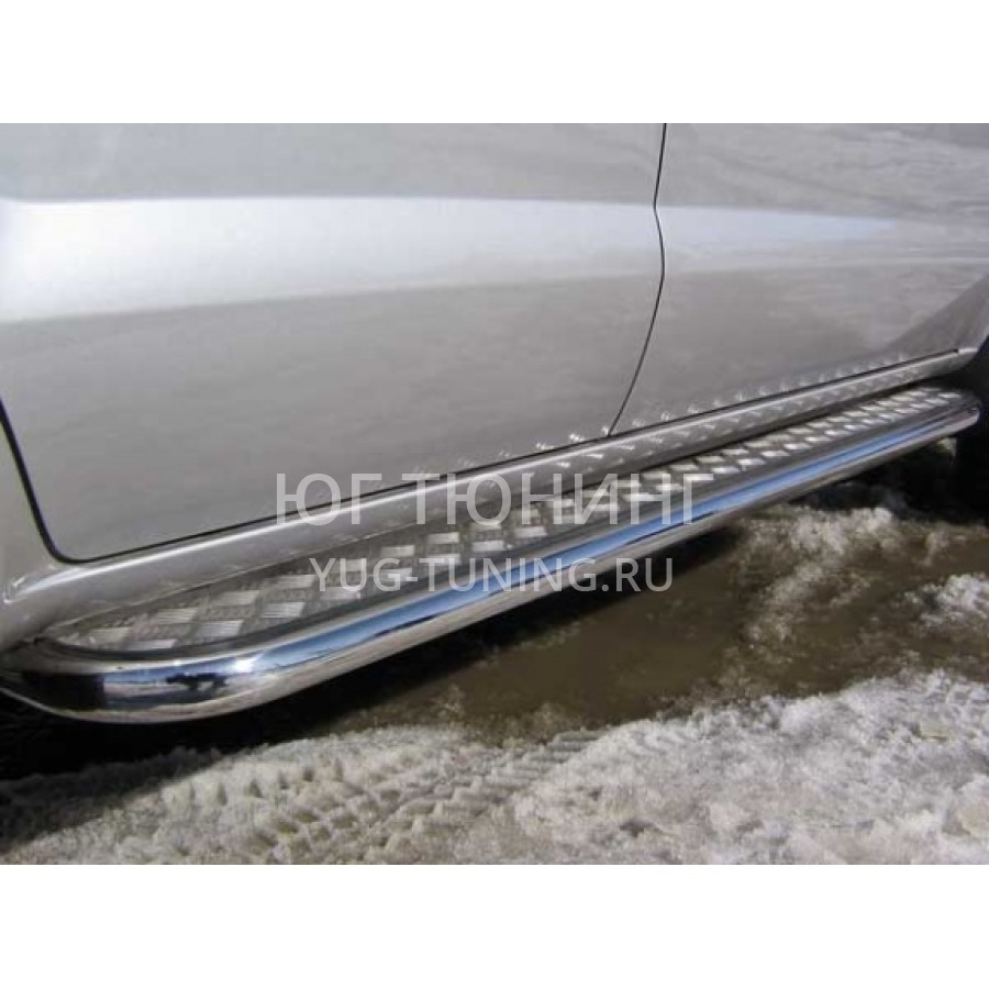 При изготовлении товара: Пороги d42 с листом Hyundai Tucson используются передовые технологии и качественные материалы. Данный товар HT010 комплектуется комплектом переходных кронштейнов и необходимым количеством болтов, гаек и шайб для его установки. Также в комплекте поставляется понятная инструкция по установке и рекомендации по уходу за изделием.