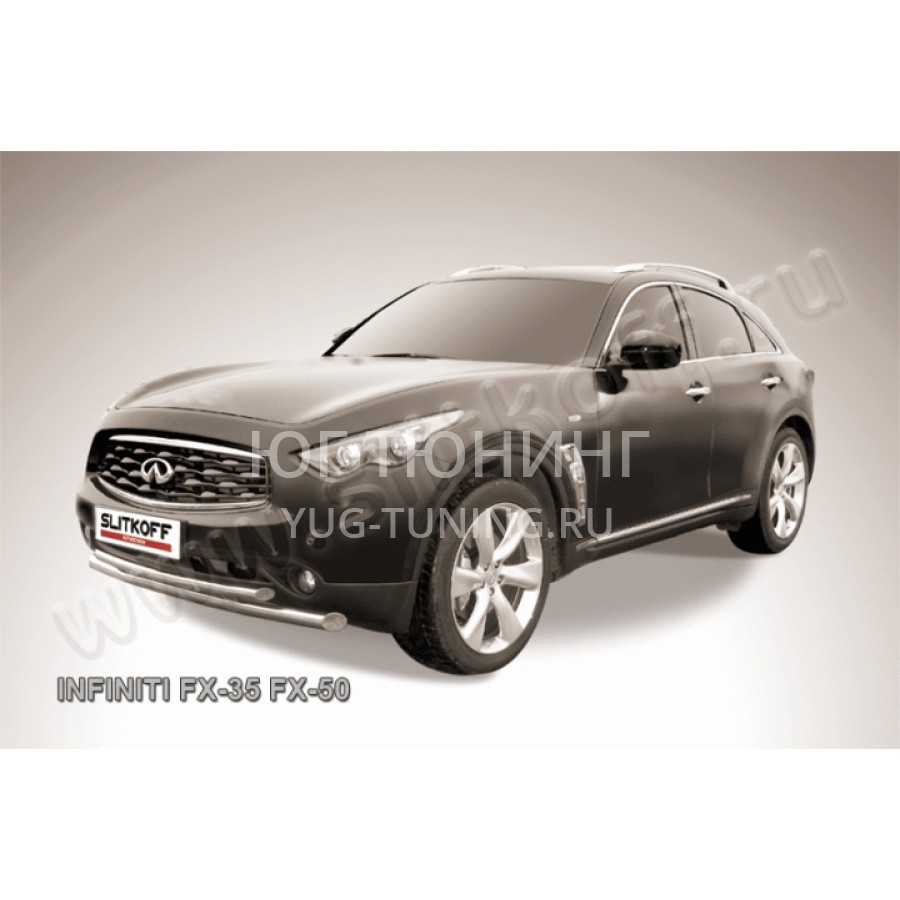 При изготовлении товара: Защита переднего бампера d76+d57 двойная Infiniti FX-35; FX-50 используются передовые технологии и качественные материалы. Данный товар IN.FX003 комплектуется комплектом переходных кронштейнов и необходимым количеством болтов, гаек и шайб для его установки. Также в комплекте поставляется понятная инструкция по установке и рекомендации по уходу за изделием.