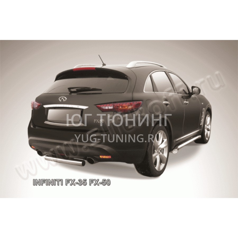 При изготовлении товара: Защита заднего бампера d76 Infiniti FX-35; FX-50 используются передовые технологии и качественные материалы. Данный товар IN.FX010 комплектуется комплектом переходных кронштейнов и необходимым количеством болтов, гаек и шайб для его установки. Также в комплекте поставляется понятная инструкция по установке и рекомендации по уходу за изделием.