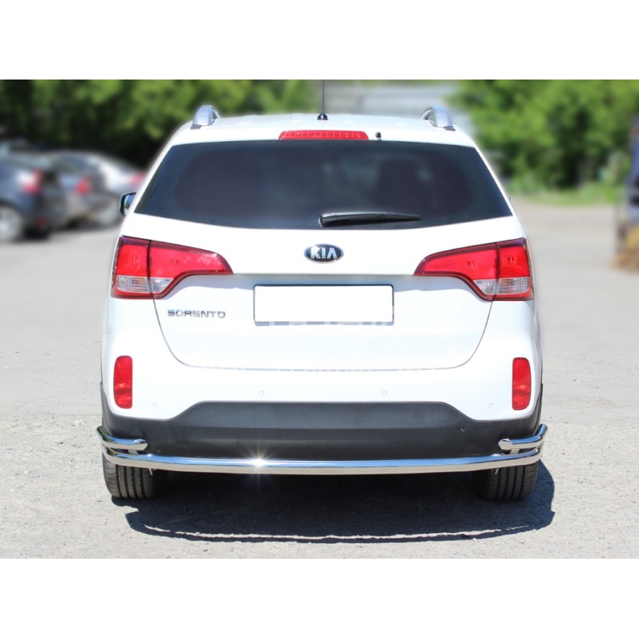Защита заднего бампера изготовлена из полированной нержавеющей трубы AISI 304 d-60х1,5 mm и d-43х1,5 mm. Все производимые компанией «Технотек» изделия имеют сертификаты соответствия. Устанавливаются изделия в штатные места автомобиля, все необходимые для установки данной детали крепежные элементы и инструкция входит в комплект. Защита заднего бампера, не только украшает автомобиль, но и носит защитную функцию.