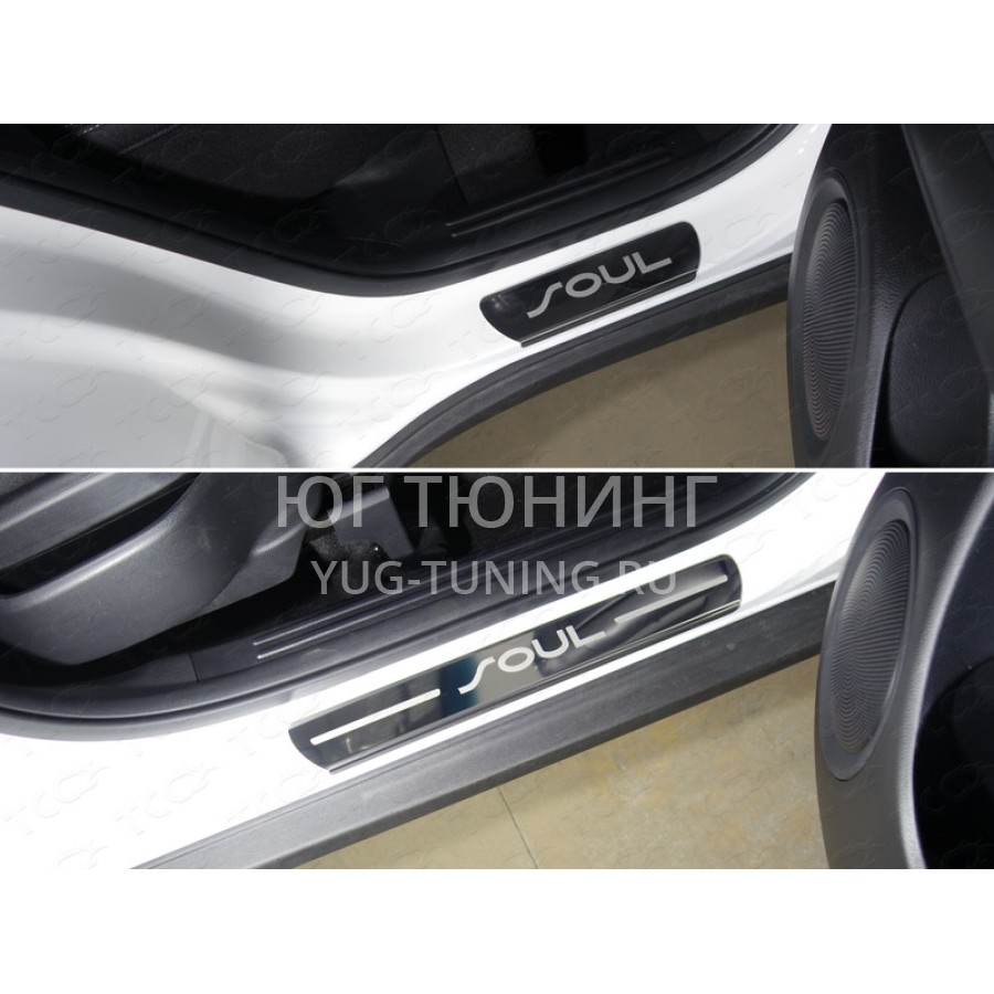 Теги: KIASOUL17-11, Накладки на пороги (лист зеркальный надпись Soul) 4шт код KIASOUL17-11