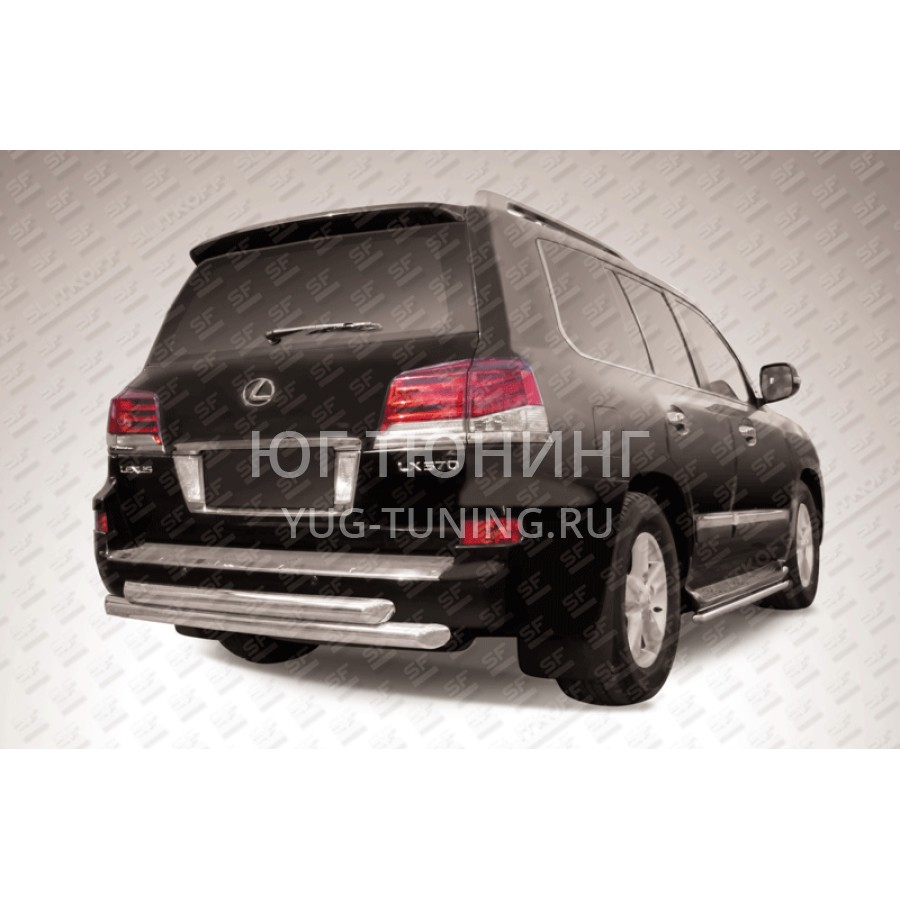 При изготовлении товара: Защита заднего бампера d76+d76 радиусная Lexus LX-570 используются передовые технологии и качественные материалы. Данный товар LLX570-12-009 комплектуется комплектом переходных кронштейнов и необходимым количеством болтов, гаек и шайб для его установки. Также в комплекте поставляется понятная инструкция по установке и рекомендации по уходу за изделием.