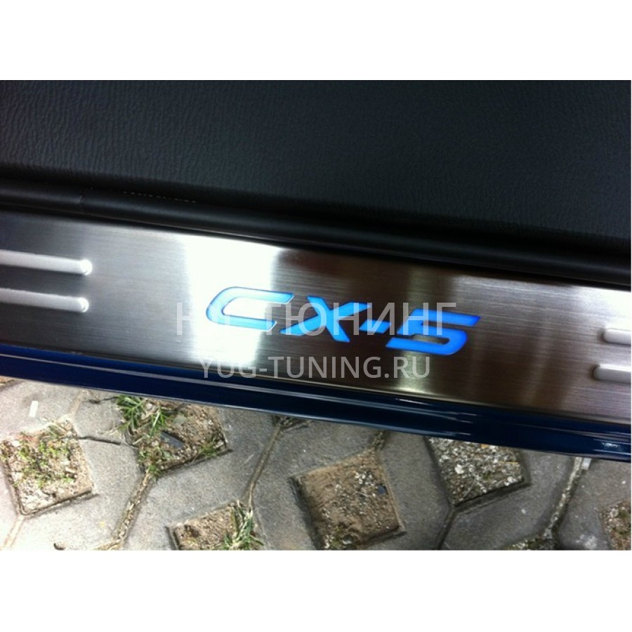 837, Накладки на пороги с подсветкой (свет голубой, полир. нерж. сталь), , ? 6,600, CHNNPLED-BL-CX5, Racing Guys, Mazda... →