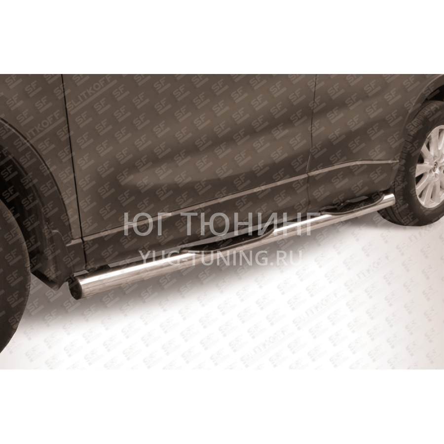 При изготовлении товара: Пороги d76 с проступями Mazda CX-5 используются передовые технологии и качественные материалы. Данный товар MZCX5-003 комплектуется комплектом переходных кронштейнов и необходимым количеством болтов, гаек и шайб для его установки. Также в комплекте поставляется понятная инструкция по установке и рекомендации по уходу за изделием.