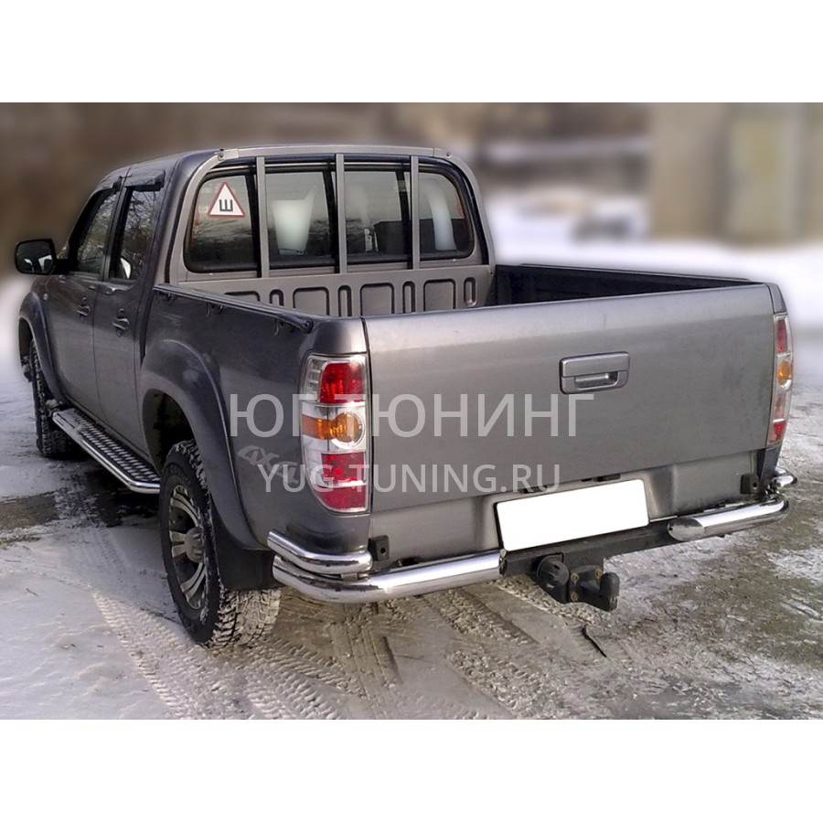 Защита заднего бампера изготовлена из полированной нержавеющей трубы AISI 304 d-76х1,5 mm и d-53х1,5 mm. Все производимые компанией «Технотек» изделия имеют сертификаты соответствия. Устанавливаются изделия в штатные места автомобиля, все необходимые для установки данной детали крепежные элементы и инструкция входит в комплект. Защита заднего бампера, не только украшает автомобиль, но и носит защитную функцию.