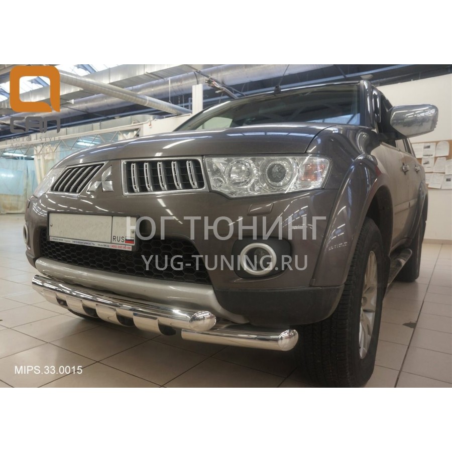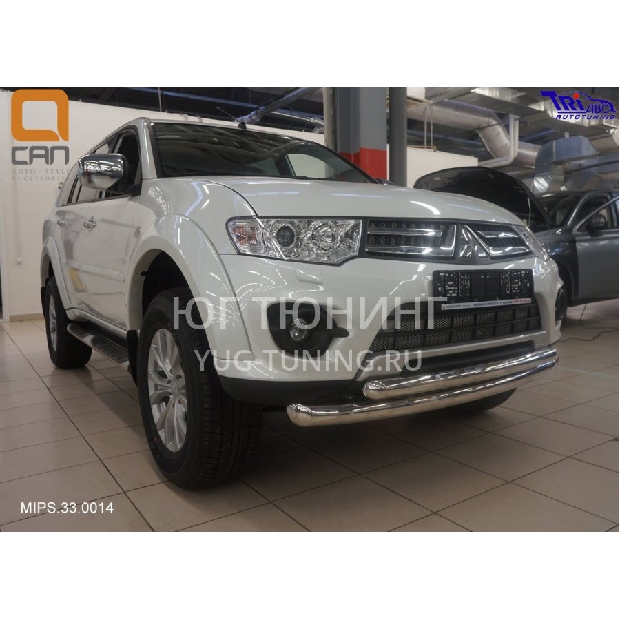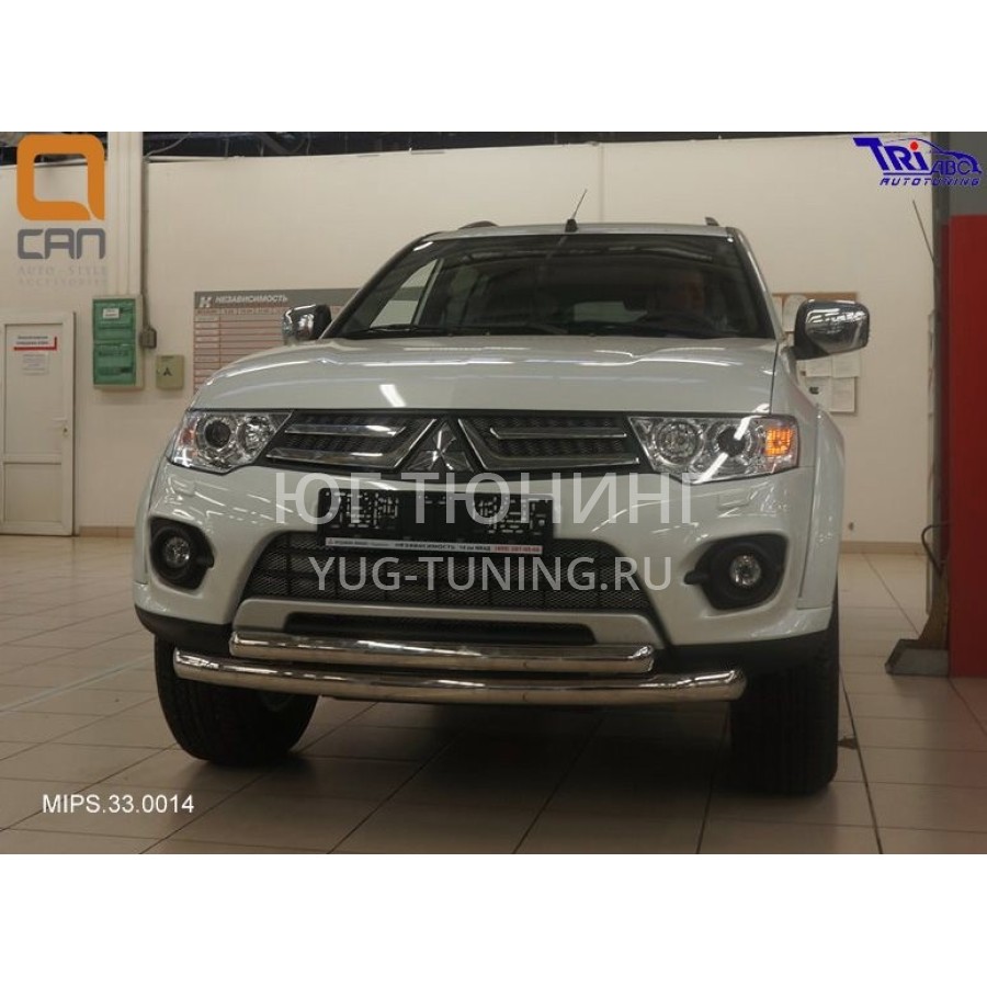 Защита переднего бампера Mitsubishi Pajero Sport (Митсубиши Паджеро) (2008-)/L200 (2014- 2015 кроме комплектации Invite) (двойная) d 76/60