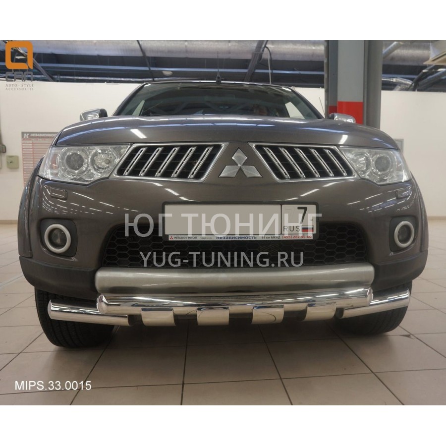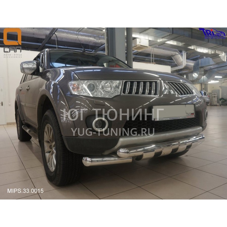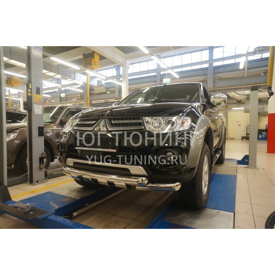 Защита переднего бампера Mitsubishi Pajero Sport (Митсубиши Паджеро) (2008-)/L200 (2014- кроме комплектации Invite) Shark d 76/76