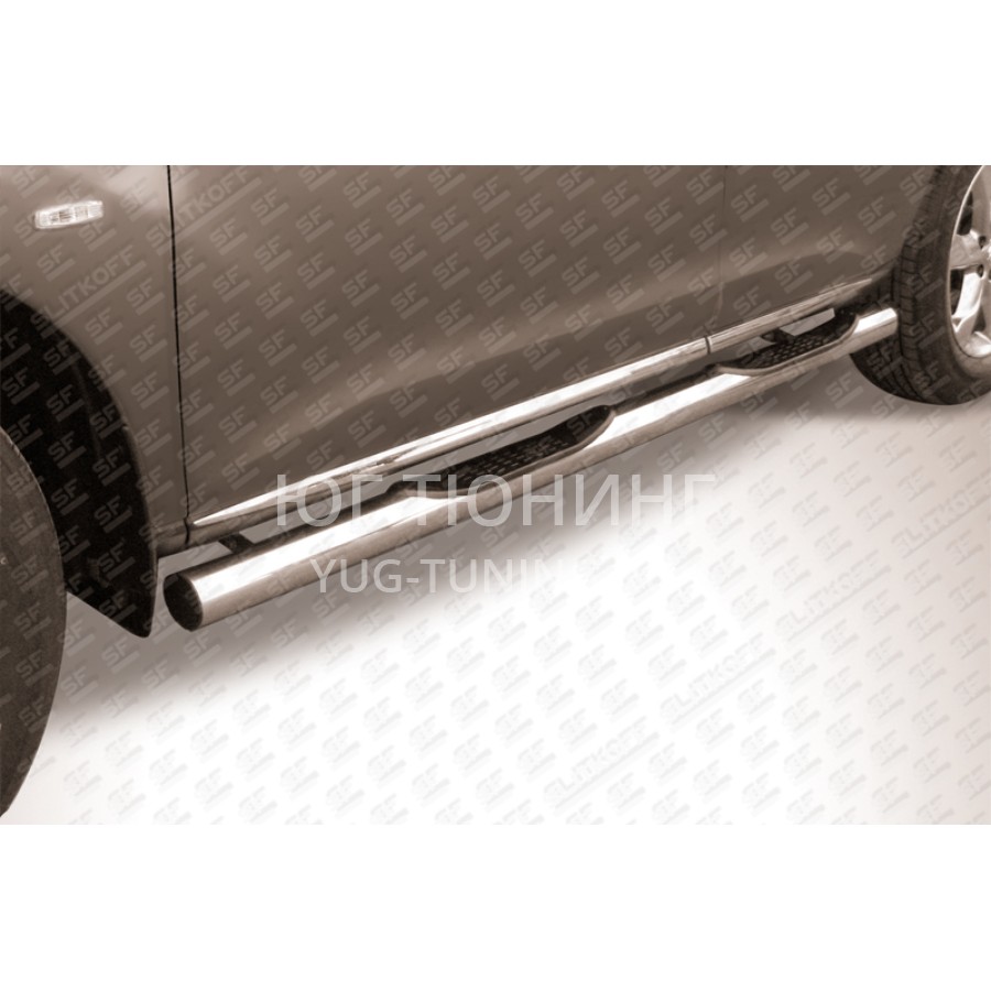 При изготовлении товара: Пороги d76 с проступями Nissan Murano (2011) используются передовые технологии и качественные материалы. Данный товар NIM11004 комплектуется комплектом переходных кронштейнов и необходимым количеством болтов, гаек и шайб для его установки. Также в комплекте поставляется понятная инструкция по установке и рекомендации по уходу за изделием.