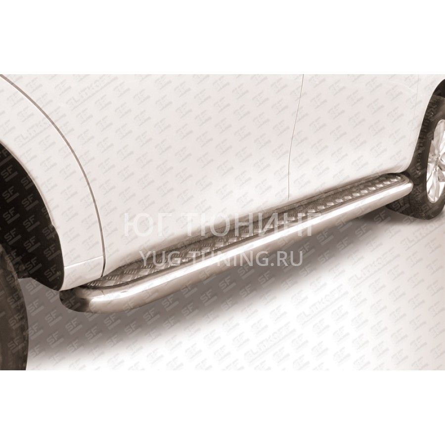 При изготовлении товара: Пороги d76 с листом Nissan Patrol используются передовые технологии и качественные материалы. Данный товар NIPAT011 комплектуется комплектом переходных кронштейнов и необходимым количеством болтов, гаек и шайб для его установки. Также в комплекте поставляется понятная инструкция по установке и рекомендации по уходу за изделием.
