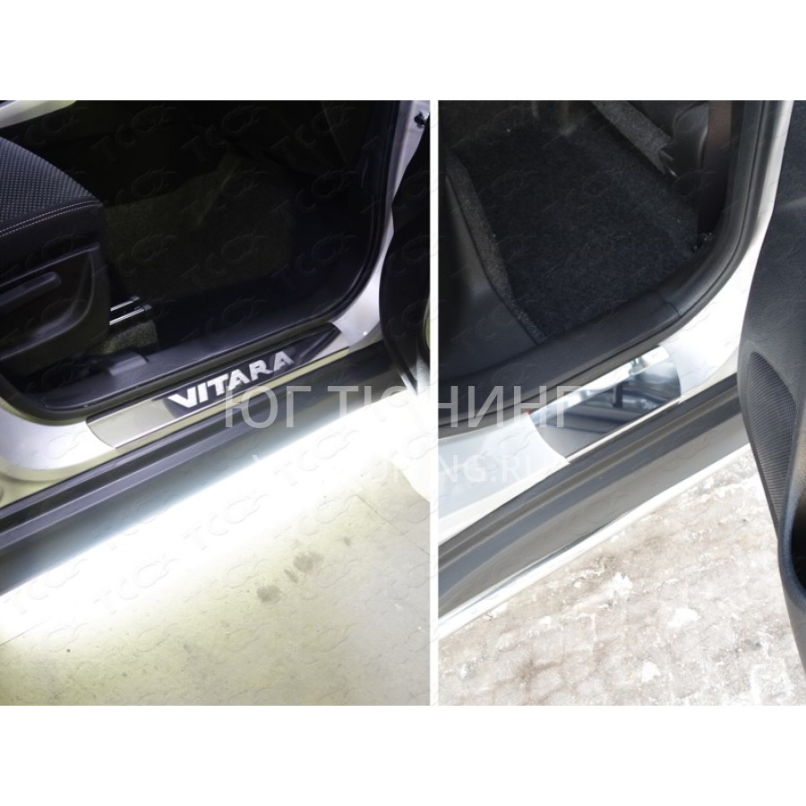 Теги: SUZVIT15-16, Накладки на пороги (лист зеркальный надпись Vitara) код SUZVIT15-16