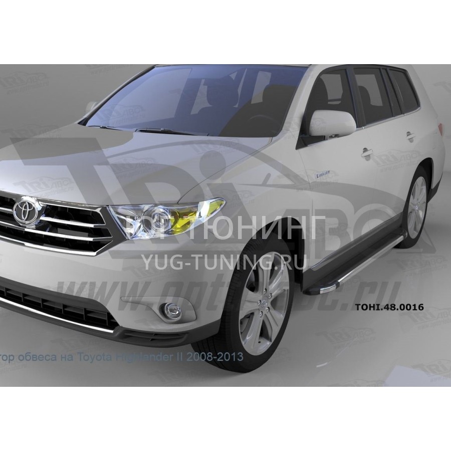 Пороги алюминиевые (Brillant) Toyota Highlander (Тойота Хайлендер) (2010-2013) (черн/нерж) на Toyota Highlander (2010-2013)