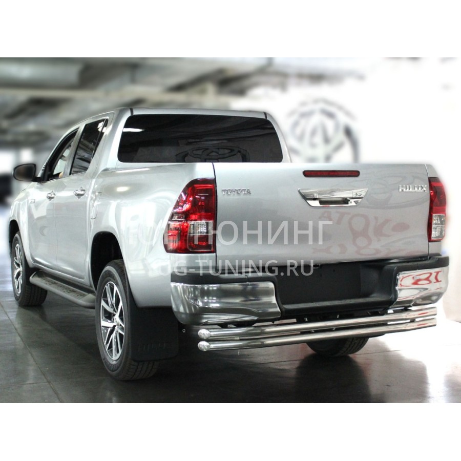 Защита заднего бампера изготовлена из полированной нержавеющей трубы AISI 304 d-76х1,5 mm. Все производимые компанией «Технотек» изделия имеют сертификаты соответствия. Устанавливаются изделия в штатные места автомобиля, все необходимые для установки данной детали крепежные элементы и инструкция входит в комплект. Защита заднего бампера, не только украшает автомобиль, но и носит защитную функцию.