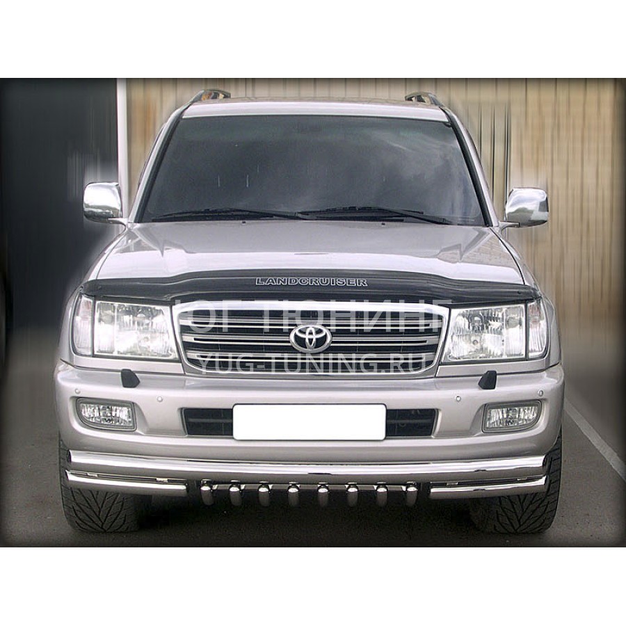 Защита переднего бампера изготовлена из полированной нержавеющей трубы AISI 304 d-76х1,5 mm и d-60х1,5 mm. Все производимые компанией «Технотек» изделия имеют сертификаты соответствия. Устанавливаются изделия в штатные места автомобиля, все необходимые для установки данной детали крепежные элементы и инструкция входит в комплект. Защита переднего бампера, не только украшает автомобиль, но и носит защитную функцию.