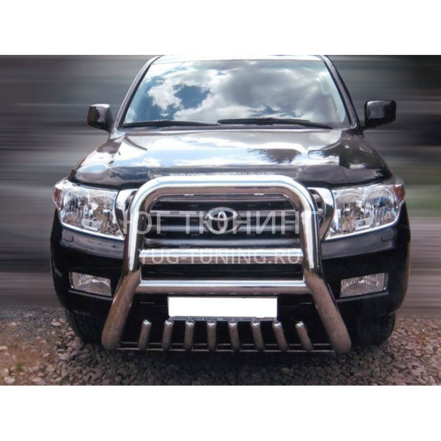Защита переднего бампера изготовлена из полированной нержавеющей трубы AISI 304 d-76х1,5 mm и d-43х1,5 mm. Все производимые компанией «Технотек» изделия имеют сертификаты соответствия. Устанавливаются изделия в штатные места автомобиля, все необходимые для установки данной детали крепежные элементы и инструкция входит в комплект. Защита переднего бампера, не только украшает автомобиль, но и носит защитную функцию.