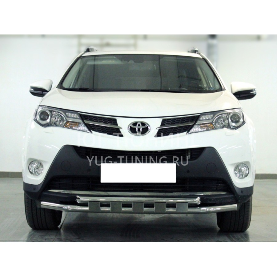 Защита переднего бампера d-53+53 с доп.накладками (квадратные) (TRN13_1.5) на Toyota Rav4 (2013-2015)