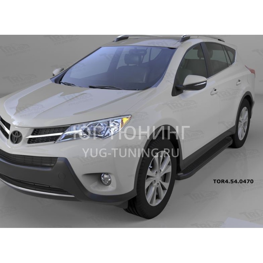 Пороги алюминиевые (Sapphire Black) Toyota RAV4 (Тойота РАВ4) (2013-/ 2015-) силовой крепеж