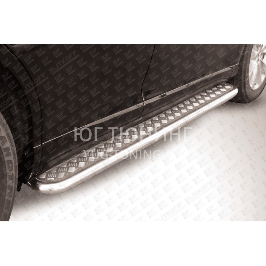При изготовлении товара: Пороги d57 с листом Toyota Venza (2013) используются передовые технологии и качественные материалы. Данный товар TVEN008 комплектуется комплектом переходных кронштейнов и необходимым количеством болтов, гаек и шайб для его установки. Также в комплекте поставляется понятная инструкция по установке и рекомендации по уходу за изделием.