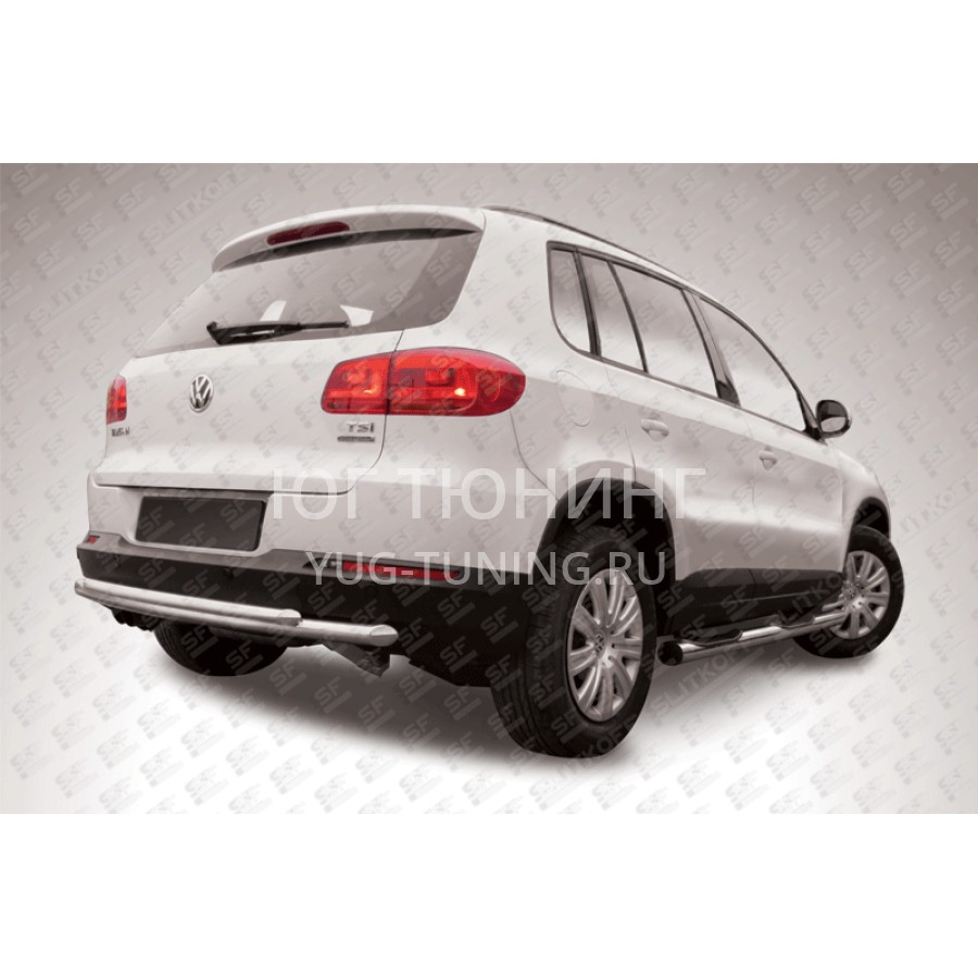 При изготовлении товара: Защита заднего бампера d57+d42 двойная радиусная Volkswagen Tiguan (2011) используются передовые технологии и качественные материалы. Данный товар VWTIG-010 комплектуется комплектом переходных кронштейнов и необходимым количеством болтов, гаек и шайб для его установки. Также в комплекте поставляется понятная инструкция по установке и рекомендации по уходу за изделием.