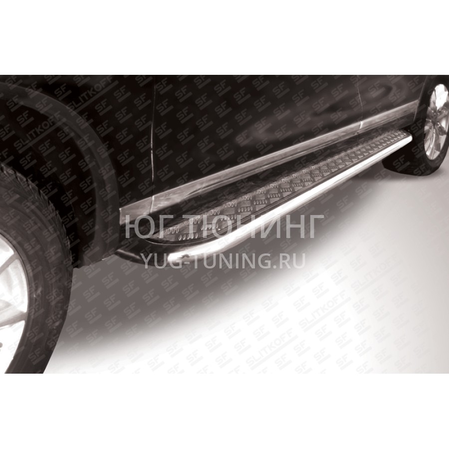 При изготовлении товара: Пороги d57 с листом Volkswagen Touareg (2010) используются передовые технологии и качественные материалы. Данный товар VWTR-006 комплектуется комплектом переходных кронштейнов и необходимым количеством болтов, гаек и шайб для его установки. Также в комплекте поставляется понятная инструкция по установке и рекомендации по уходу за изделием.