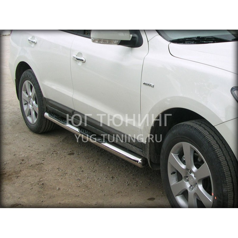 Пороги выполнены из нержавеющей трубы AISI 304 d-76x1,5 mm с пластиковыми площадками (степами). Устанавливаются изделия в штатные места автомобиля, все необходимые для установки данной детали крепежные элементы и инструкция входит в комплект. Благодаря порогам посадка-высадка в автомобиль будет гораздо комфортней. Все производимые компанией «Технотек» изделия имеют сертификаты соответствия.