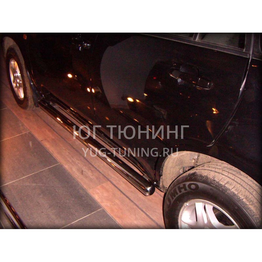 Пороги выполнены из нержавеющей трубы AISI 304 d-53x1,5 mm. Устанавливаются изделия в штатные места автомобиля, все необходимые для установки данной детали крепежные элементы и инструкция входит в комплект. Пороги носят не только декоративную, но и защитную функцию. Все производимые компанией «Технотек» изделия имеют сертификаты соответствия.