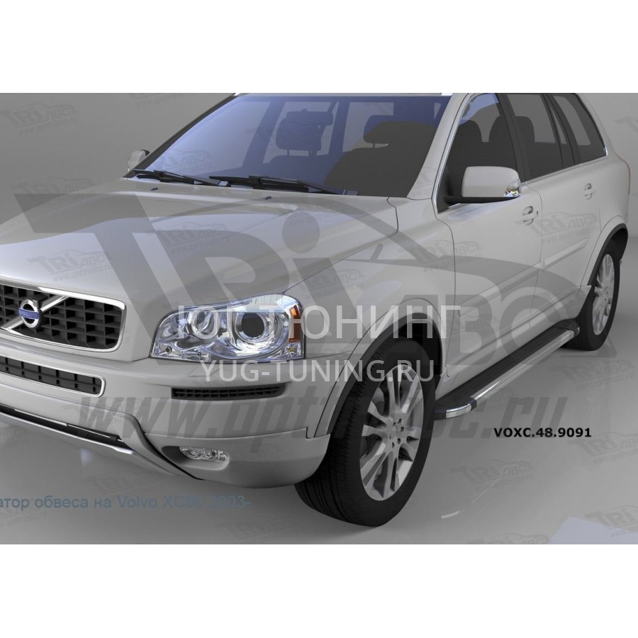 Пороги алюминиевые (Brillant) Volvo (Вольво) XC90 (2006-) (черн/нерж) на Volvo XC90 (2002-2015)